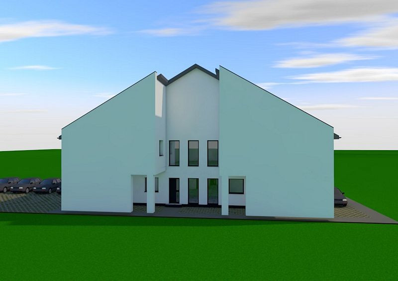 Szerkezeti leírás: Beton sávalapozás. 30-as égetett vázkerámia tégla fő falazat + 15cm dryvit szigetelés. Szintek között ,,E” gerendás felbeton, míg a zárófödém fa szerkezetű 25cm kőzetgyapot szigeteléssel ellátva. A külső nyílászárók műanyag szerkezetűek, fokozott hőszigetelésű üvegezéssel, fehér színben. Cserép fedésű tető.