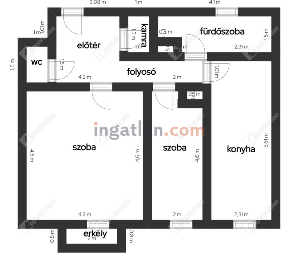 Az ingatlan két külön nyíló szobával, tágas előtérrel, külön WC-vel, fürdőszobával, kamrával és egy jól kihasználható erkéllyel rendelkezik. A helyiségek jól bútorozhatók, élhető, kényelmes teret biztosítanak a mindennapokhoz.
