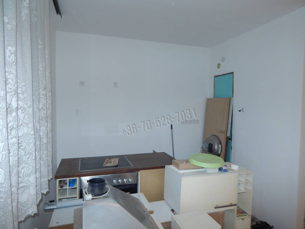 A konyha befejezése a leendő tulajdonosra vár. A konyhabútor összes alkatrésze, az elszívóval együtt a vételár részét képezi, de az összeépítése már a vevő feladata, a csempe,és a konyhai járólap kiválasztásával, és felhelyezésével együtt.