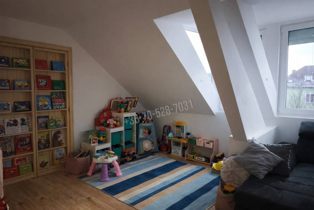 Eladó Tatabánya Újvárosban egy nagyon tágas, világos, tetőtéri, 77 m2-es otthon a 4. emeleten.