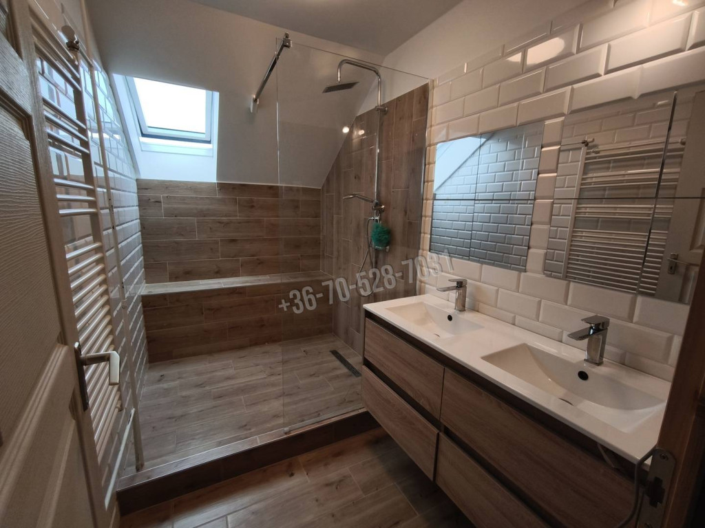 Összessen így 4 szoba+2 fél szoba is rendelkezésre áll az új tulajdonos számára. Minden helyiségben kíváló minőségű burkolatok lettek felhelyezve.