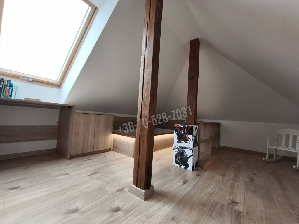 Az otthon összeköttetésben van egy padlásszobával is amihez egyedülálló haszonélvezeti joggal rendelkezik.