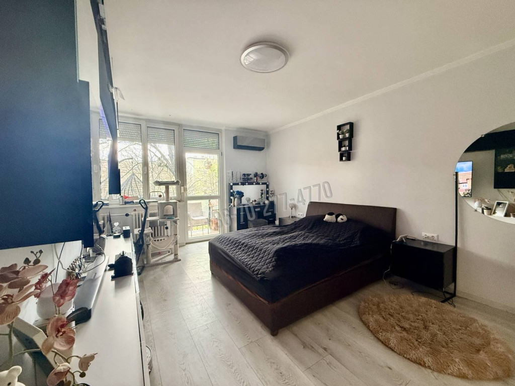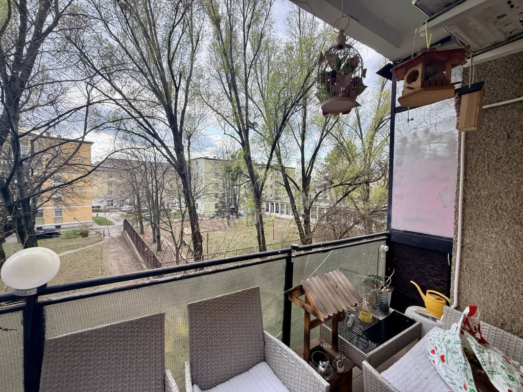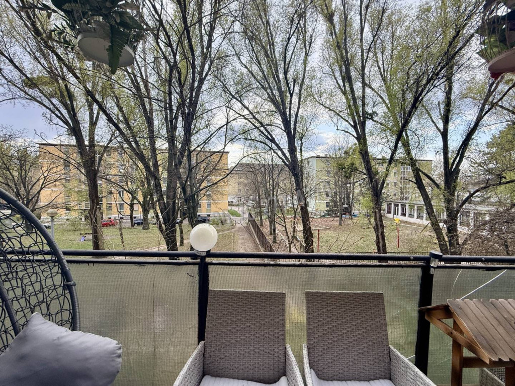 A tágas erkély parkra néz, így csendes, nyugodt környezetet biztosít.