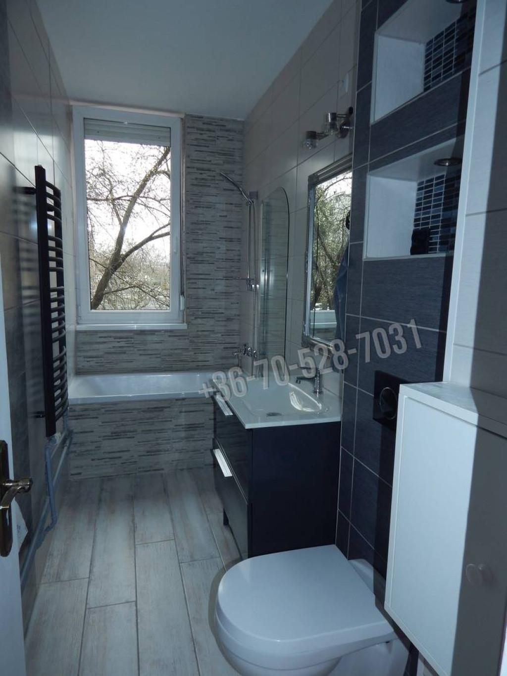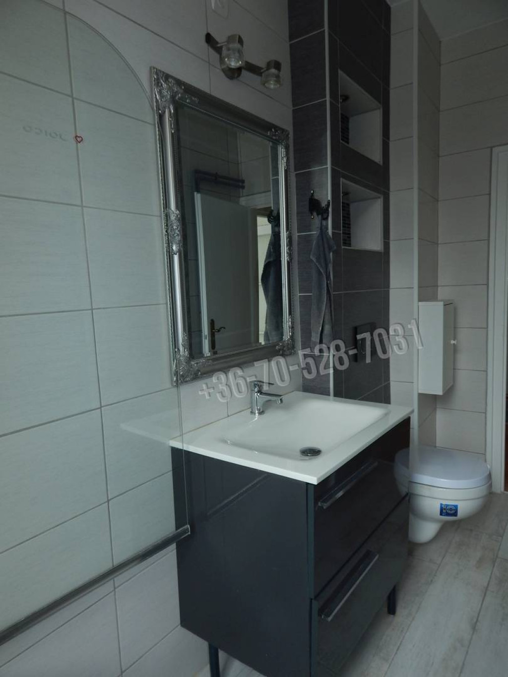 A fürdőszoba, és a wc teljesen felújított kíváló minőségű anyagokból.