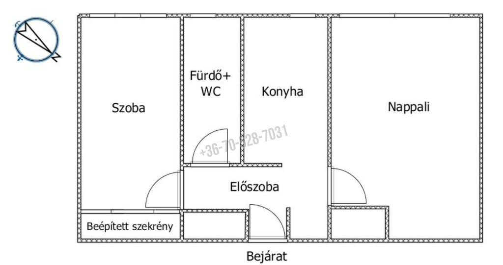 A bejárat több ponton záródó biztonsági ajtó. Az ablakok jó minőségű műanyag nyílászárók, 2 rétegű üvegezéssel, és redőnnyel.