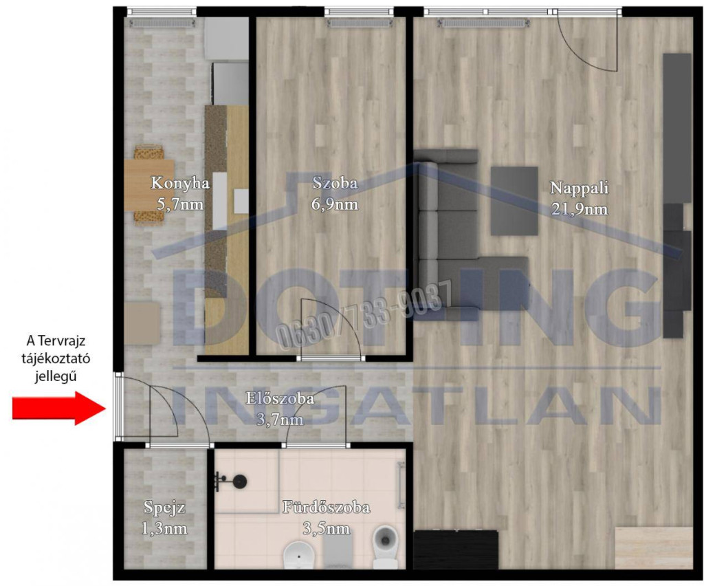 • 1,5 szobás elrendezés