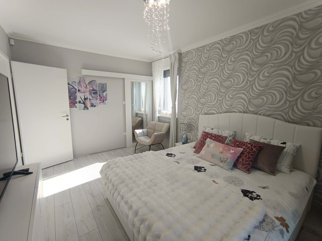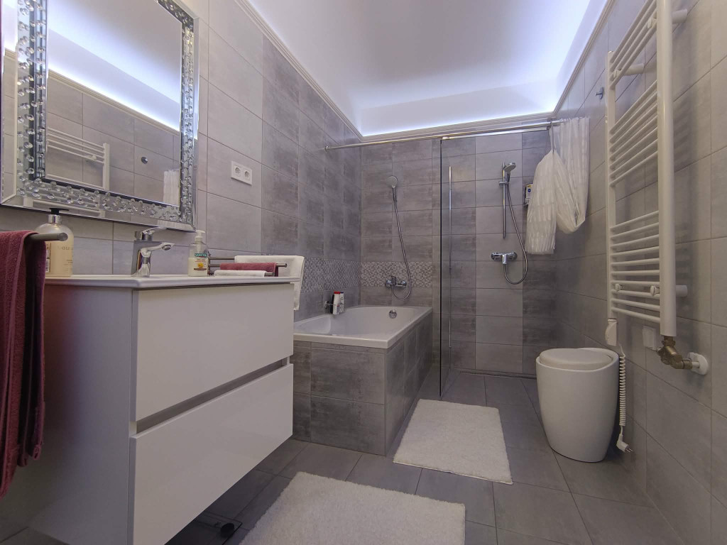 Az ingatlan már az első pillanatban lenyűgöz: a lakás belső kialakítása teljesen egyedi, hiszen a tulajdonos még az átadás előtt átterveztette a belső tereket. Ennek köszönhetően egy rendkívül harmonikus, praktikus és stílusos otthon született, ahol a modern dizájn és a funkcionalitás tökéletes egyensúlyban találkozik.