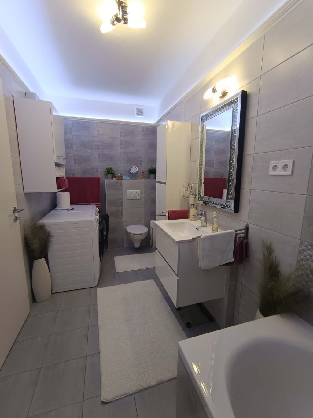 tágas, modern fürdőszoba