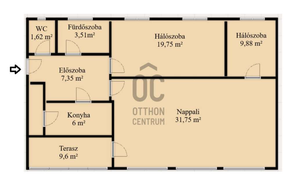 Saját, közvetlenül a bejárat mellett nyíló tároló tartozik a lakáshoz.