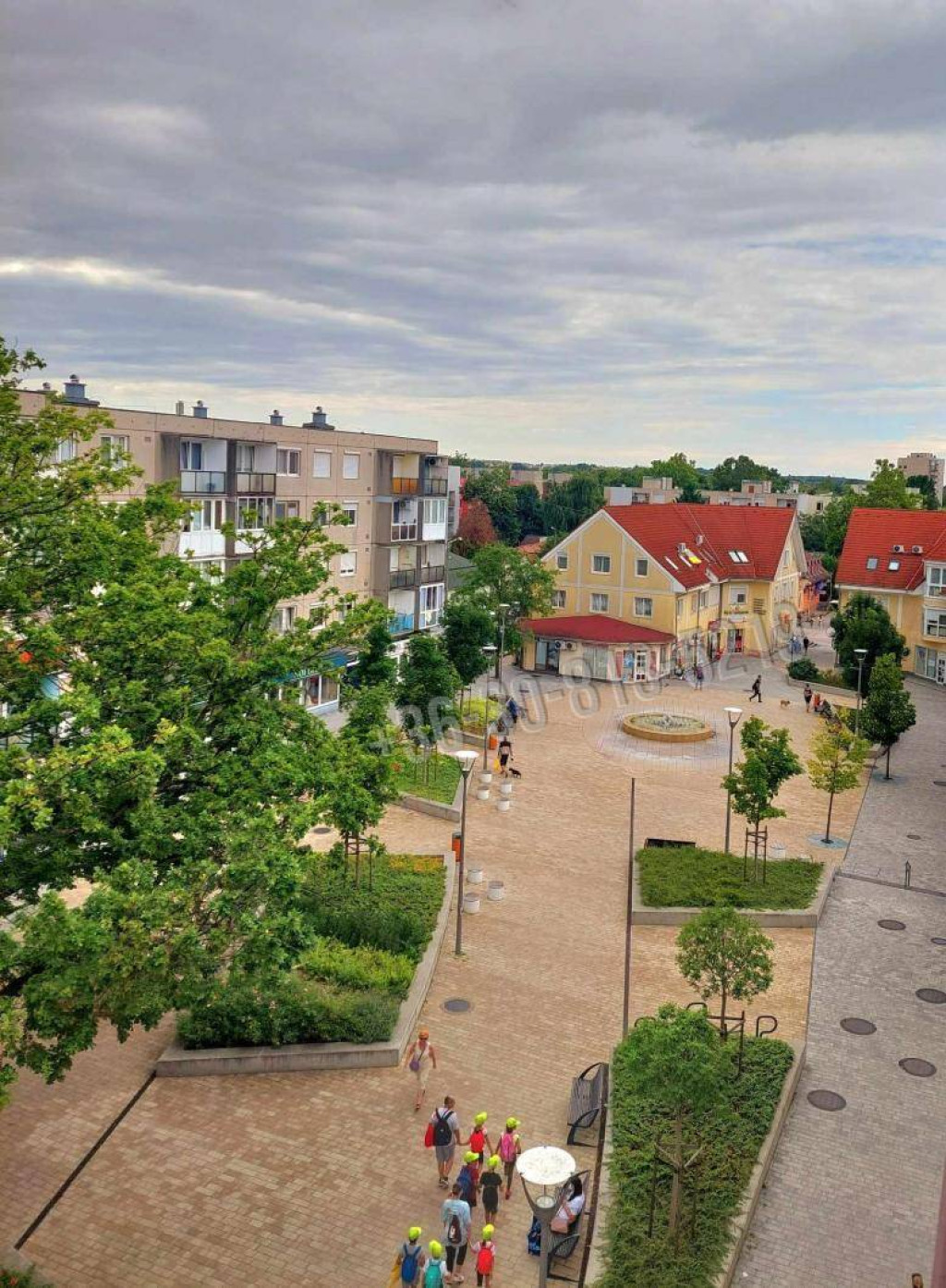 ✅ Kilátás: a nappaliból egyenesen a sétáló utca hangulatos üzleteire, szőkőkútra néz, a fürdő és a háló parkosított füves fás területre néz.
