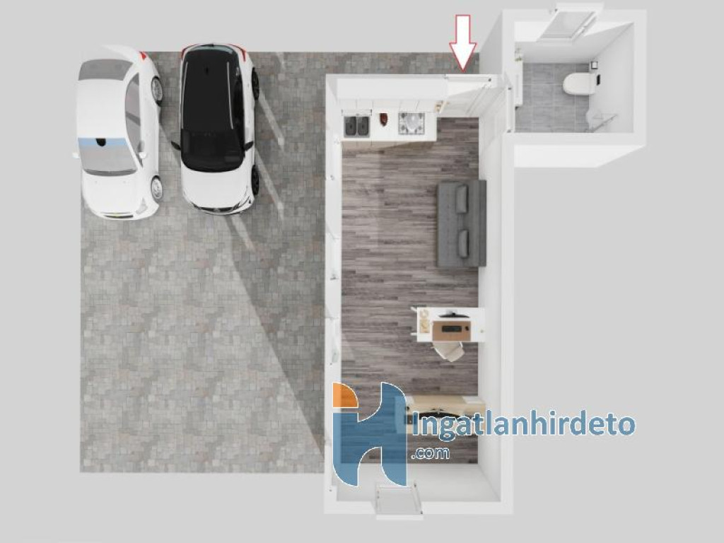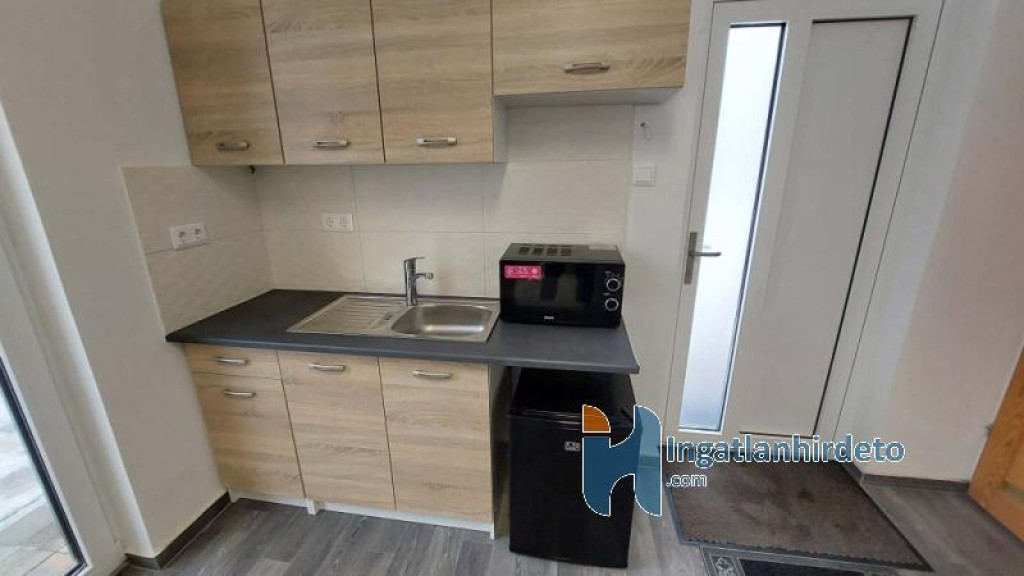 Az ingatlan egy teakonyhás nappaliból és egy külön nyíló fürdőből áll. Az ablakok redőnnyel és szúnyoghálóval felszereltek. Igény esetén a nappaliban egy halófülke könnyedén kialakítható. Jelenleg irodaként és tárolóként van hasznosítva.