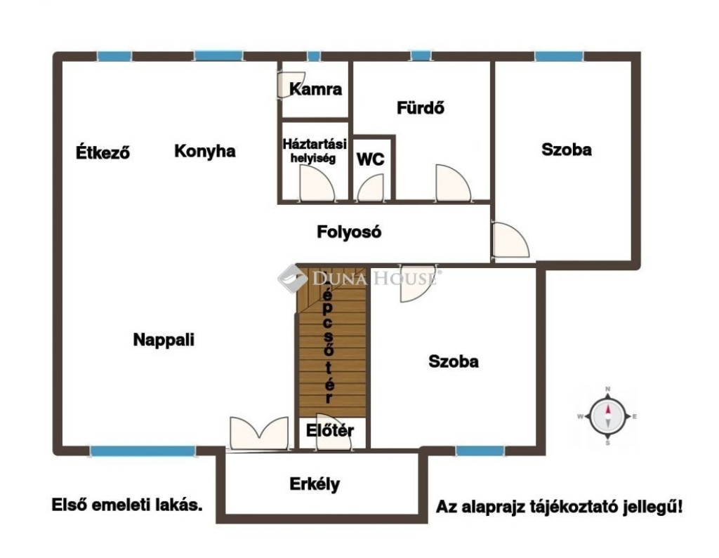 A WC külön helyiségben található, ami nagyobb családok számára is kényelmet jelent. A konyhából nyíló kamra az északi ablaknak köszönhetően kiváló tárolóhely az élelmiszerek számára.
