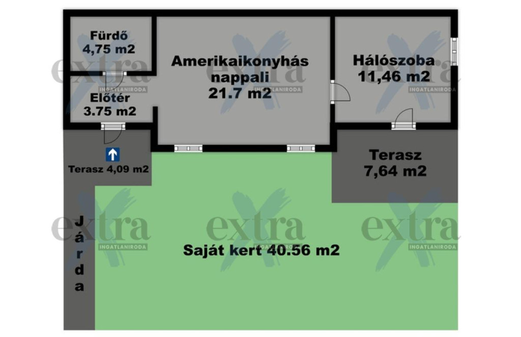 - 40 m2 körüli saját kertrésszel