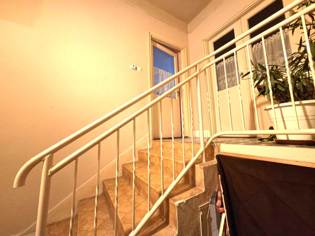 Felsőszint: közlekedő, gyerekszoba, gyerekszobából tudunk fölmenni a padlástérre illetve az erkélyre, hálószoba, összesen négy szoba, egy fürdő, egy wc, egy kazánház, egy spájz, egy erkély, fa nyílászárok, padlásfödém szigetelés,
