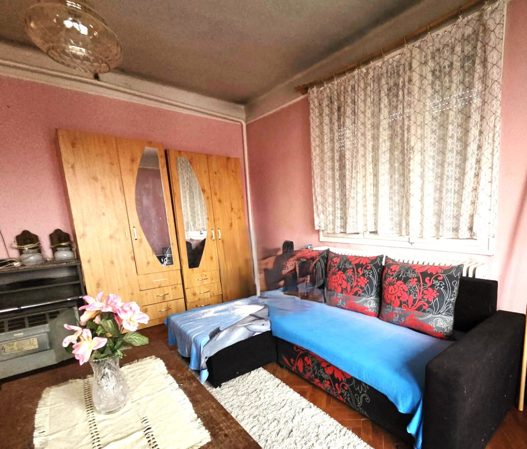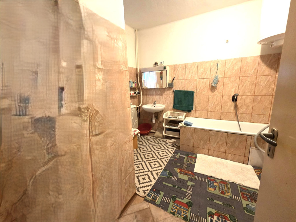 Cseréptető, klíma, redőnyözött, falak festettek és tapétázottak, műanyag szunyogháló az ablakokon,