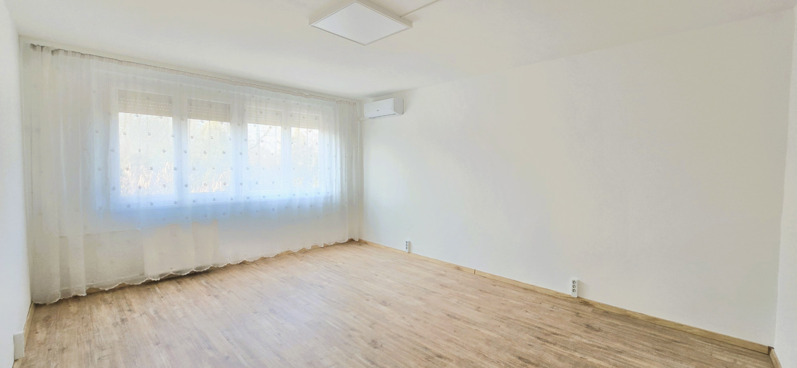 Mindkét szobában új hűtő -fűtő klíma biztosítja a lakásban a nyári kánikulában a komfortos hőfokot. A két szoba burkolata laminált parketta, a többi helyiség járólappal burkolt.