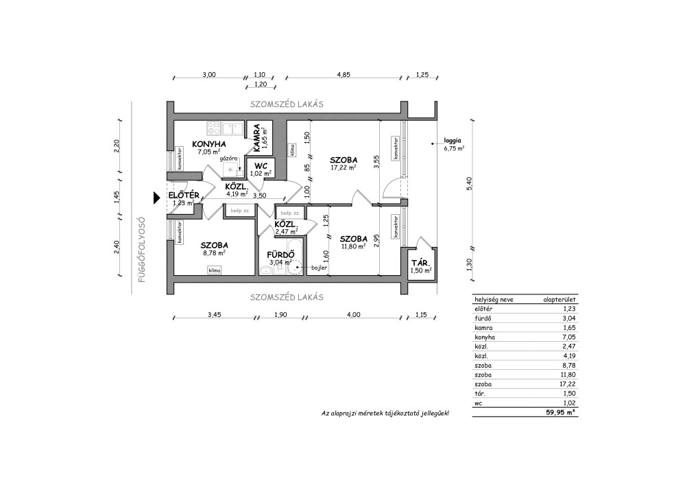 2 db energiatakarékos Bosch hűtő–fűtő klíma (külön kültéri egységgel), amelyek az egész lakást képesek komfortosan temperálni – nyáron hűtenek, átmeneti időszakban fűthetnek