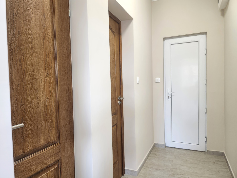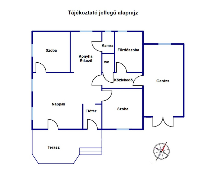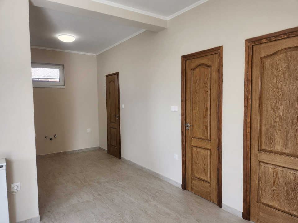 A 68 m2 alapterületű lakás praktikus elrendezésű, helyiségei: 2 szoba, nappali, konyha-étkező, előszoba, közlekedő, fürdőszoba és wc. A lakáshoz tartozik egy 24 m2-es garázs és egy 14,5 m2-es terasz.