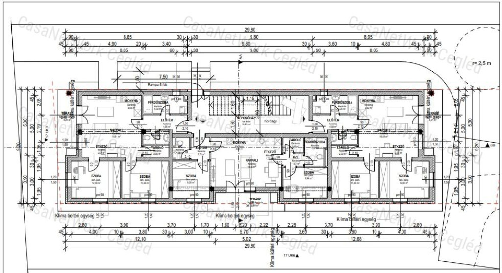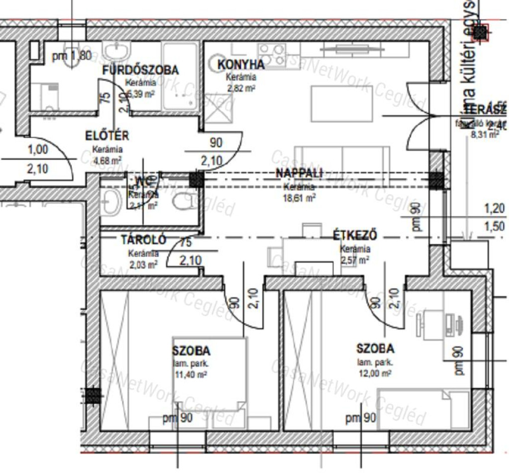 A CasaNetWork Ingatlanhálózat kínálatában eladó épülő téglalakások Újszászon! Az ingatlan hirdetési azonosítója: 174602227A hirdetett lakás: földszint 3-es lakás: fűtött lakótér: 61,67 nm + 8,31 nm teraszA ház modern technológiával, kiváló minőségű anyagokból készül: Phorotherm 30-as falazat kiváló hőszigetelő képességekkel rendelkezik, így télen-nyáron komfortos hőmérsékletet biztosít. A nyílászárók hő- és hangszigetelő műanyag ablakok, amelyek fokozzák az energiahatékonyságot, és kellemes belső klímát teremtenek.A fűtésről hőszivattyús fűtés gondoskodik padlófűtéssel. A nyári hőséget lakásonként 1 db inverteres klímaberendezés teszi elviselhetővé.Ez az otthon minden műszaki és kényelmi igényt kielégít, amit a modern családi élet megkövetel.Főbb jellemzők:Tágas belső tér: 2 szoba, nappali-konyha, fürdőszoba+Wc, külön WC, háztartási helyiség, előtér és terasz.Minőségi burkolatok: Laminált parketta melegburkolatként, választható mintázattal. Hidegburkolat: padlólap, legfeljebb 6.000 Ft/m² értékben.Modern nyílászárók: Műanyag ablakok hő- és hangszigetelő, 3 rétegű üvegezéssel, erkélyajtók – a lakás szellőztetése a tulajdonos feladata.Felszerelt fürdő és konyha: Kád vagy tusoló, kézmosó a fürdőben, wcKorszerű fűtési rendszer: hőszivattyús fűtés, padlófűtés és radiátoros fűtés kombinációja.Klíma: Inverteres klímaberendezés a kellemes nyári hőmérsékletért.Biztonságos bejárat: többpontos zárral ellátott biztonsági ajtó.Műszaki adatok:Válaszfalak: 10 cm-es tégla, kiváló hang- és hőszigeteléssel.Tető: Azzurro betoncserépKözművek: Gáz, víz, villany, csatornaVárható átadás: 2026 nyár Az ingatlan műszaki tervei alapján hirdetjük meg. Kérjük, vegye figyelembe, hogy a használatbavételi engedély kiadását követően kisebb m²-eltérések előfordulhatnak.Amennyiben a CasaNetWork Cegléd által kínált, 174602224 azonosítószámú téglalakás, vagy bármely más ingatlan felkeltette érdeklődését, keressen bizalommal a megadott telefonszámon!Felhívjuk figyelmét, hogy a hirdetésben szereplő adatok a megbízótól származnak, azok pontosságáért felelősséget nem vállalunk.Ügyfeleink részére díjmentes, bankfüggetlen hitelügyintézést biztosítunk! Az ingatlanra igénybe vehető a 3%-os lakáshitel!CasaNetWork – Ingatlanban otthon vagyunk.