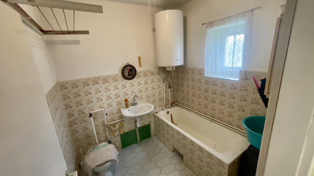 A ház 60 m² a telek 1059 m² amin található egy nyárkonyha illetve 2 tároló és kinti Wc.