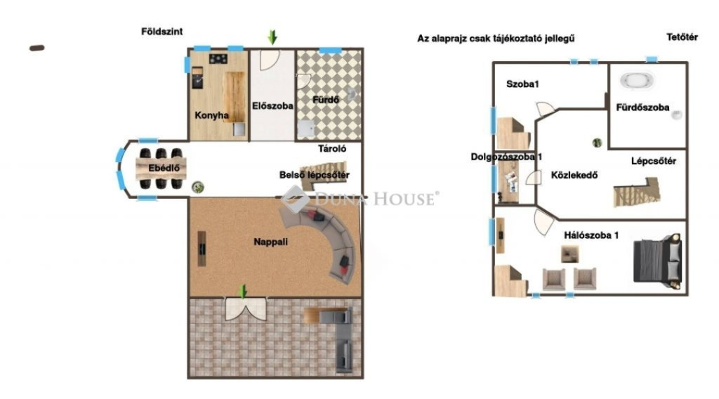 A lépcsővel szemben kisebb dolgozószoba/gardrób, mely többfunkciósan használható.