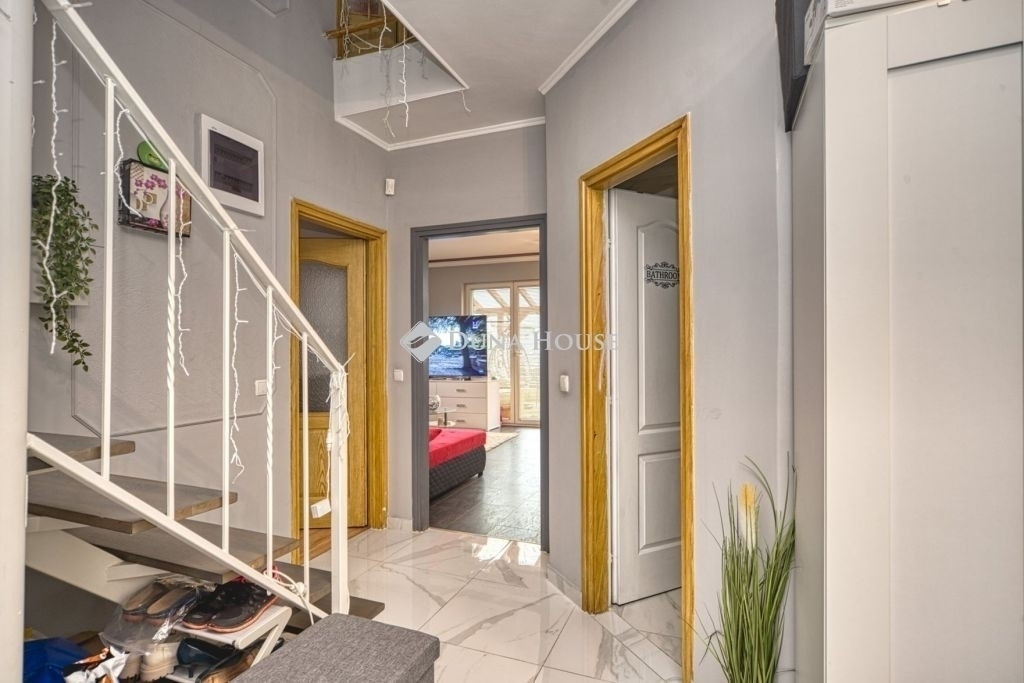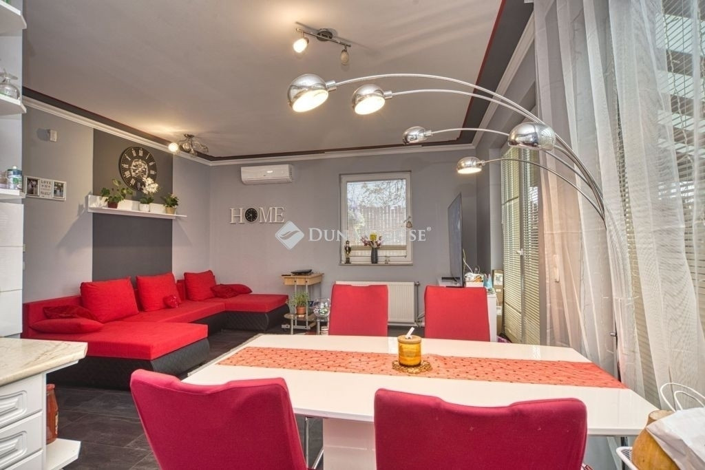 Új lakóit keresi ez az agglomerációban lévő társasházi lakás!CsOK(+) szólok, hogy 3% Start Otthon Hitel feltételeinek is megfelel!És most figyeljen!Lakásba költözne, de nem a belvárosban? Mégis közel legyen Budapesthez?Legyen egy kis kert, mert azért nem gazdálkodni szeretne, csak élvezni a napsütést? Terasz?-Van! Medence, lehet?-Van!Parkolóhely?-Van!Körbevezetem, és döntse el Ön, hogy ideköltözne e a családjával?Üllő, családi házas övezetében, kertvárosi örnyezetbe épült fel ez a 7 lakásos társasház a 2000-es évek elején.Ytong téglából épült, cserép fedéssel, nyílászárói már műanyagok, szigeteltek. A ház szigetelése 5cm hungarocell + dryvit vakolat; a lakások fűtése gázcirkóval, hűtése légkondiciónálóval megoldott.A társasház környezete rendezett, udvara karbantartott, az épület körbekerített, kamerával megfigyelt terület.Lakói kulturáltak, összetartóak, rendezettek és barátságosak. Közösen gondozzák az udvar egyik díszét a kerti tavat és az azt körülvevő zöld óázist, illetve élvezik előnyét az udvaron lévő 8*4 m nagyságú medencének és a hozzátartozó napozó terasznak.Az udvaron található parkoló helyek dedikáltak, társasházi alapítóokiratban rögzítettek.Lépjünk be az eladó lakás területére!Mivel a társasház saroktelken helyezkedik el, két bejárata is van a lakásnak. Egyik a társasház közös udvara felől, másik pedig a szomszédos utcáról. Közelítsük meg innen az ingatlant. Kapun belépve saját használatú kertbe jutunk, melynek nagysága 180nm, itt helyett kapott egy kis kerti tároló, sütőgető kiülő terasszal, mely családi és baráti események helyszíne lehet. Itt lehetőség van még egy autóbeálló kialakítására is, bár a ház előtti terület ennek a célnak tökéletesen megfelel.A bejáratnál a napfényben üldögélve lehet élvezni a terasz adta nyugalmat. A házba lépve a földszinten egy korszerűen felszerelt konyha+étkező, nappali, előszoba, szoba és zuhanyzós fürdőszoba található. A fürdőszoba éke a beépített finn szauna, mely eladáskor marad az új tulajdonosnak.A konyha+étkező, nappali és előszoba, fürdőszoba kerámialappal, míg a szobák laminált parkettával burkoltak. Az emeletre stabil fémvázas lépcső vezet, ahol egy pihenő került kialakításra innen nyílik 2 szoba, kádas fürdőszoba.A szobák szintén laminált parketta burkolatot kaptak, míg a fürdőszoba kerámialapos borítást.Az emelet feletti padlástér szigetelt, OSB lappal fedett, tárolásra alkalmas.A helyiségek árnyékolása reluxával megoldott.A fűtés gázcirkós, radiátoros hőleadókkal, a nyári meleg enyhítéséről pedig légkondiciónáló gondoskodik.Összegezzük, mit is vásárol:-3 szoba,-nappali,-konyha+étkező,- 2 fürdőszoba ( melyből az egyik finn szaunával felszerelt)- mindez 97nm összesen.Ezenfelül még:+fedett terasz+kerti tároló+ sütögető terasz+ autó beállóÉSSSS még....- saját parkoló hely, zárt udvarban,-medence+ napozó terasz,-nyugalmat árasztó zöld udvar,- családias szomszédság.*Ha nem ismeri az Ytongot:A környezetbarát Ytong falazóelem nem igényel külső szigetelést, kimagasló a páraszabályozó képessége, gyakorlatilag penészmentes klímát biztosít, alacsony rezsiköltségek mellett. További előnye, hogy a kerámiatéglákhoz mérten nemcsak hatásosabb, hanem minden irányban tudja garantálni a hőszigetelést, ezáltal megfelelő falvastagság esetén nincs szükség utólagos külső szigetelésre. Ahol pedig hőszigetelésről beszélhetünk, ott jellemzően a hangszigetelési tényező szintén fontos szerepet kap, hiszen az Ytong nagyon tömör, apró légkamrákkal rendelkezik, melyek a hő mellett a hangot egyaránt képesek hatékonyan visszaverni, illetve elnyelni. Nagy teherbírás (savarozhatunk fel rá bútorokat, polcokat, bojlereket, gyakorlatilag szinte bármit), természetes anyagokból készül, így a végeredmény olyan, mintha egy mesterségesen készített mészkő lenne, mely garantáltan semmiféle káros hatást nem gyakorol sem a lakókra, sem a közvetlen környezetre.Minderről győzödjön meg a saját szemével! Hívjon és egyeztessünk még ma!Hitelezhető, rendezett tulajdoni lappal, szuperül karbantartott ingatlant vásárolhat, mely értékálló, kiváló befektetési értékkel bír!