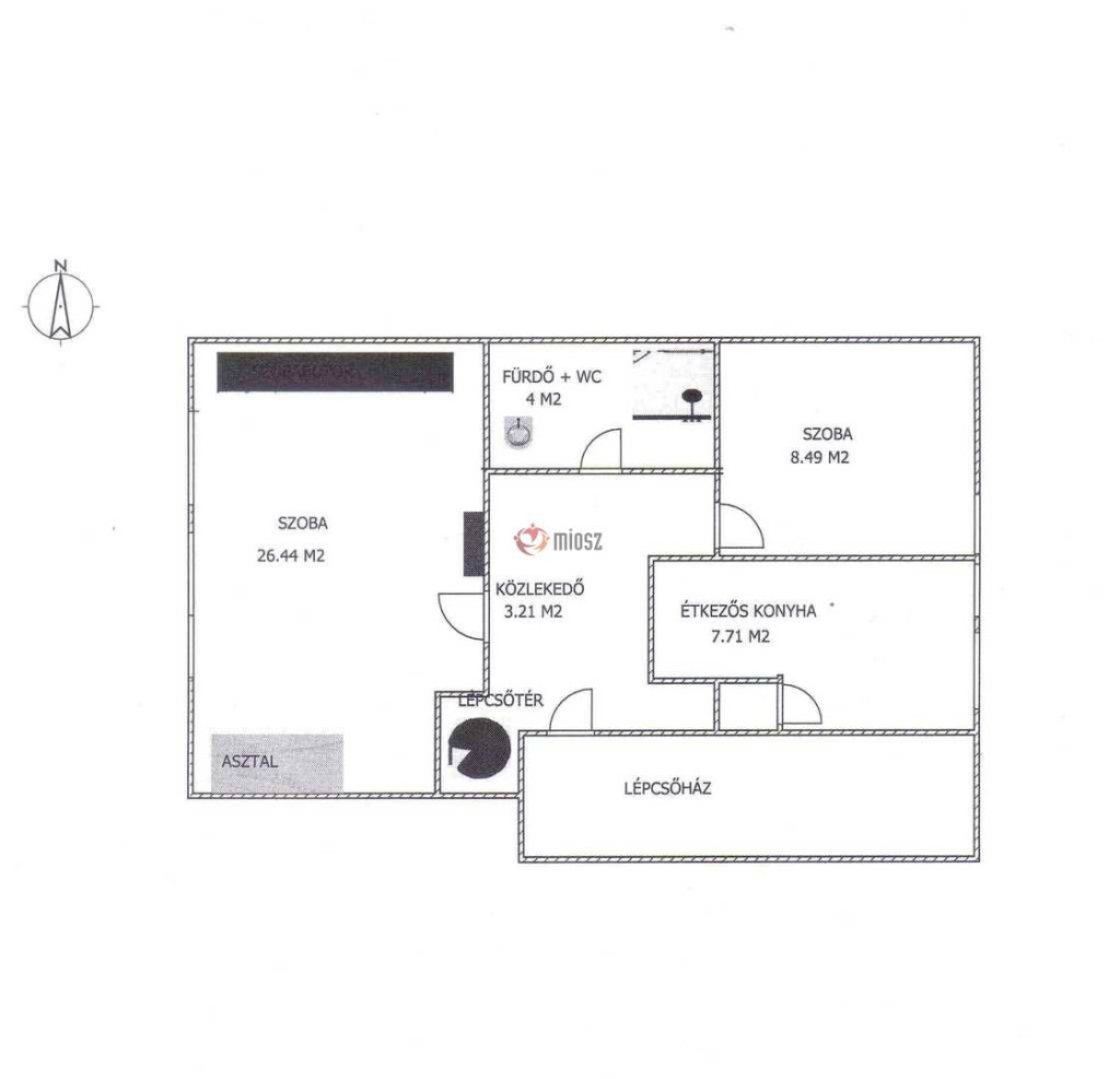 A téglalakás korának megfelelő állapotú, a leendő tulajdonos saját ízlése szerint alakíthatja át.