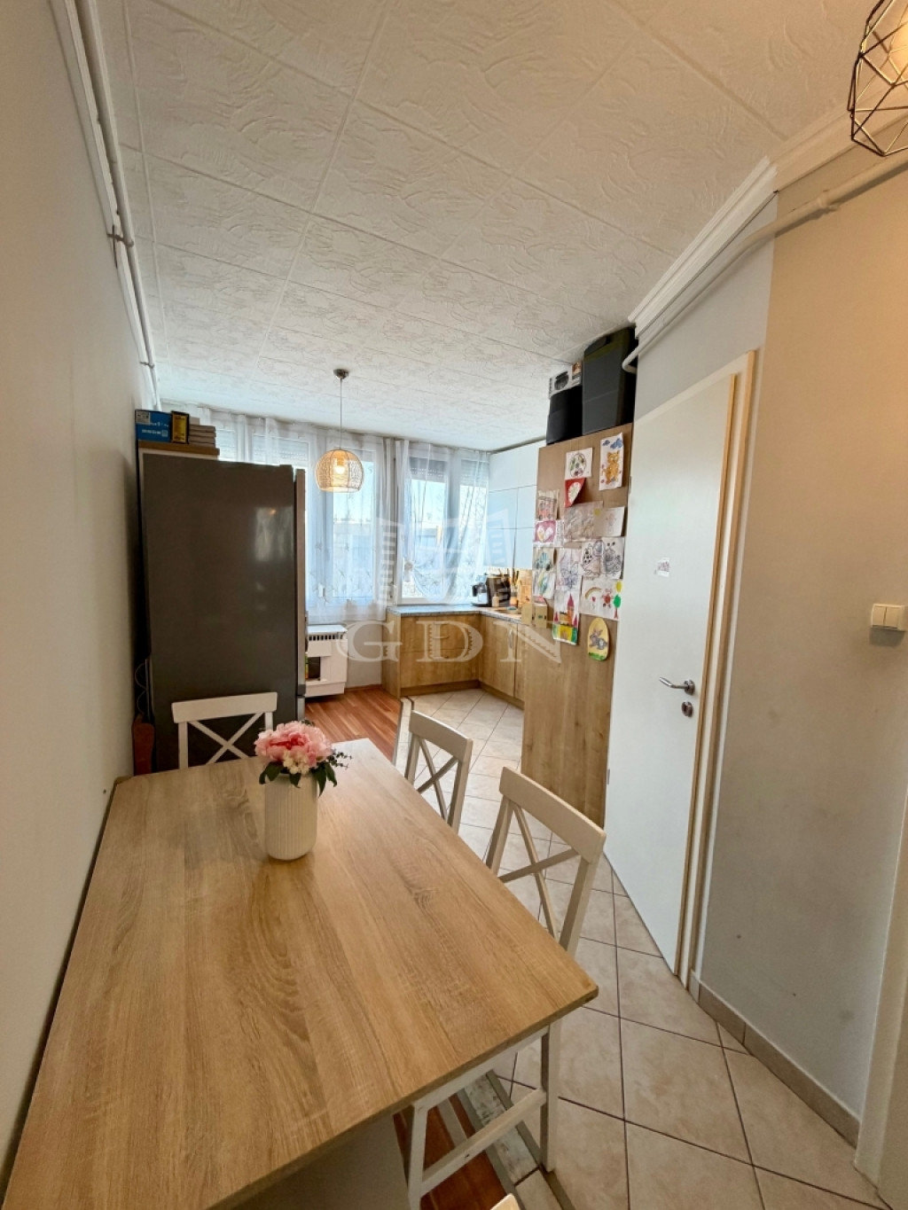 A 60 m2-es lakás a 4. emeleten helyezkedik el, keleti fekvéssel.