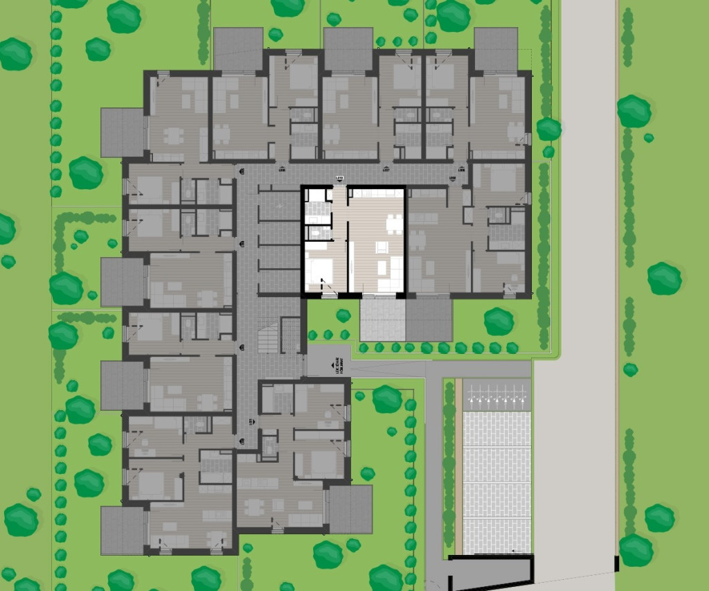 A társasház földszintjén található L10 lakás 49,34 m2 nettó alapterületű, melyhez 10,05 m2 terasz és 13,18 m2 kert tartozik. Ennek a bruttó 53.528.848,- Ft-os ára fűtéskész állapotra vonatkozik. A lakáshoz egy udvari gépkocsi beálló is tartozik bruttó 1,5 M Ft összegben, amelyet az előbb említett vételár nem tartalmaz. Igény esetén még egy beálló megvásárlására is van lehetőség és egy tároló megvétele is lehetséges.