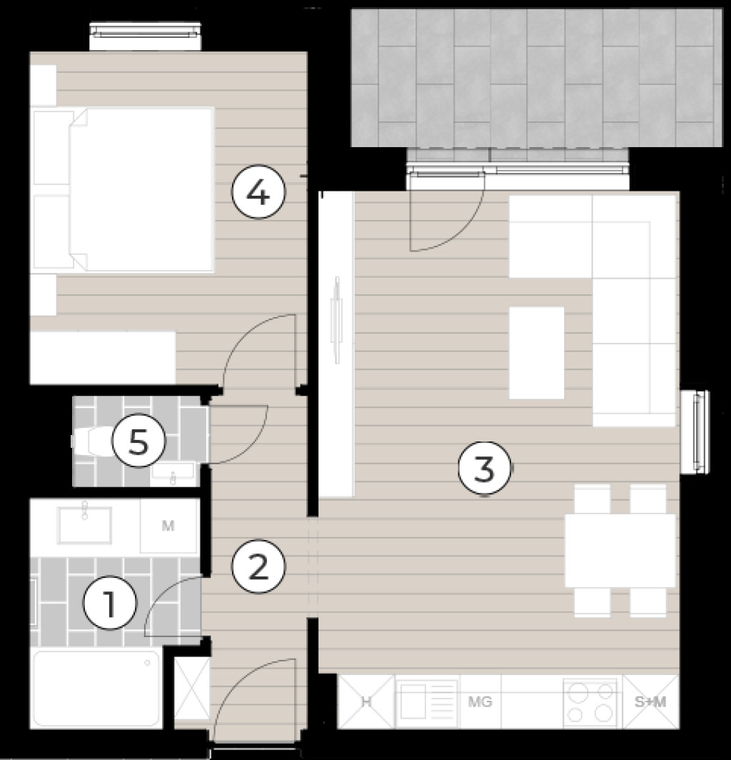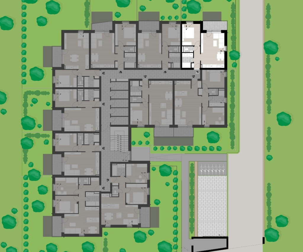 A társasház földszintjén található L18 lakás 43,96 m2 nettó alapterületű, melyhez 6,48 m2 erkély tartozik. Ennek a bruttó 47.491.608,- Ft-os ára fűtéskész állapotra vonatkozik. A lakáshoz egy udvari gépkocsi beálló is tartozik bruttó 1,5 M Ft összegben, amelyet az előbb említett vételár nem tartalmaz. Igény esetén még egy beálló megvásárlására is van lehetőség és egy tároló megvétele is lehetséges.