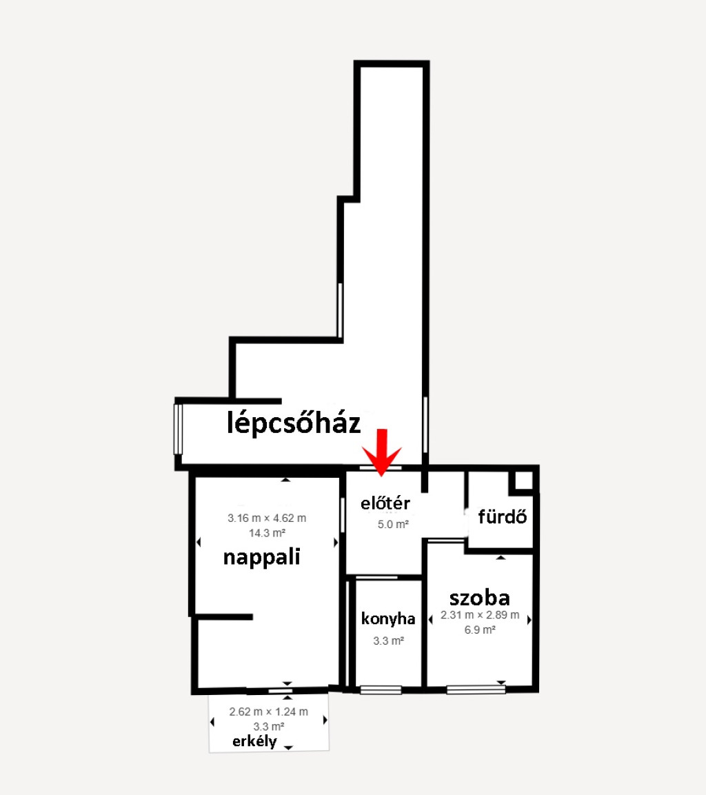 A 7. emeleti lakásba belépve egy kényelmes méretű előtérbe érkezünk. Innen nyílik jobbra a TÁGAS, ERKÉLYES NAPPALI. A nappaliban egy térelválasztóval kialakítottak egy dolgozó részt. Innen léphetünk ki a nyugati fekvésű erkélyre, ahonnan kinézve POMPÁS PANORÁMÁBAN gyönyörködhetünk a várra és a belvárosra. A bejárattal szemben a MEGÚJULT KONYHÁT találjuk. Balra egy kis előtérből nyílik a FELÚJÍTOTT, FÜRDŐKÁDAS FÜRDŐSZOBA, mellette a hálószoba kapott helyet. A lakás elrendezése kiváló, hiszen a nappali életterek és a pihenést szolgáló szoba jól elkülönül egymástól. A lakáshoz tartozik egy kis tároló is.