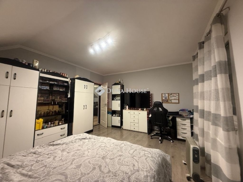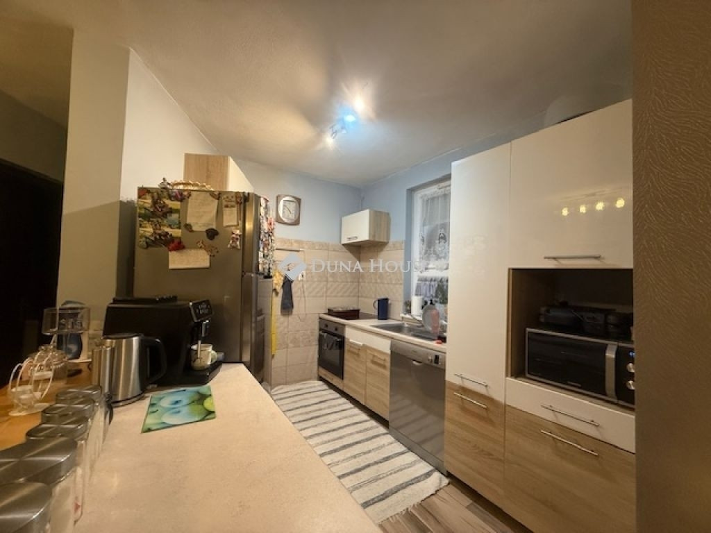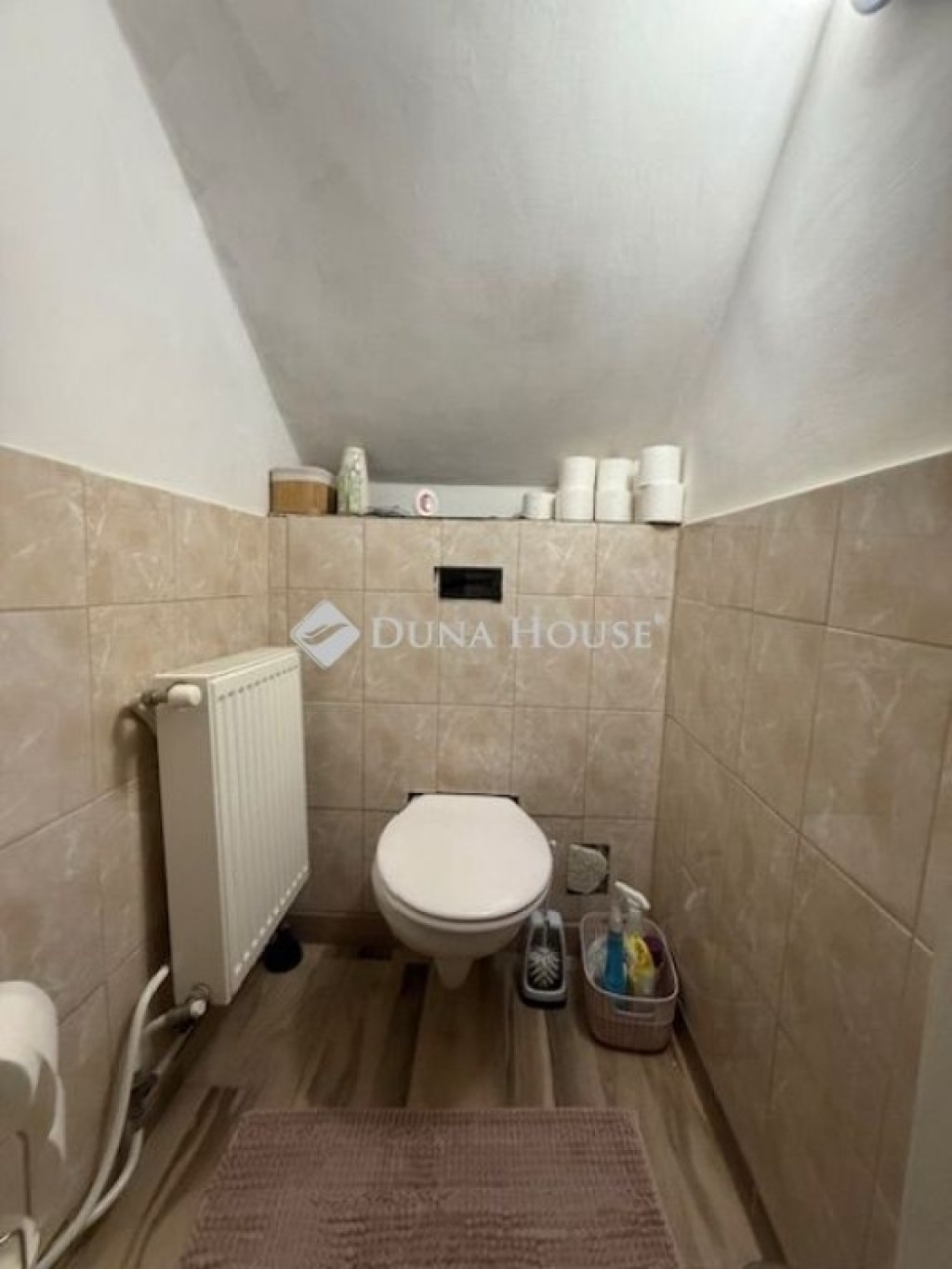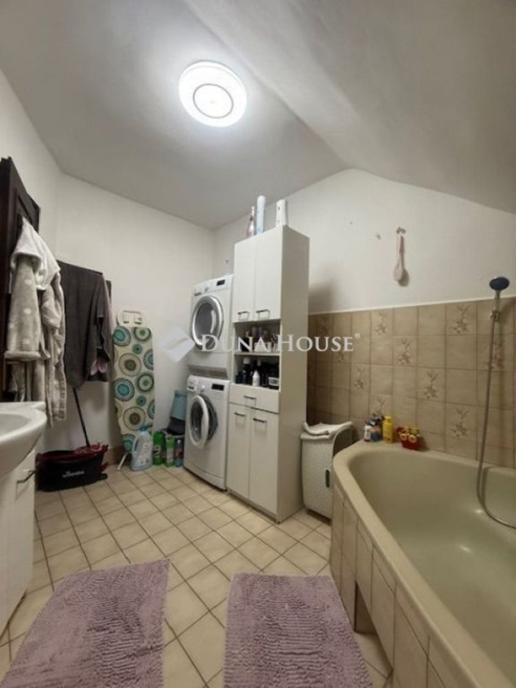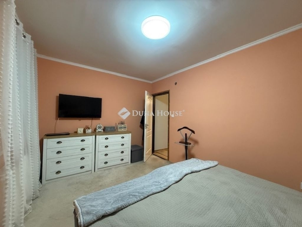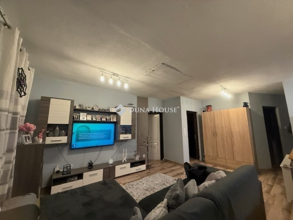 Az ingatlanban a szobák laminált parkettával burkoltak, a nappali és a vízes helységek csempe és járólappal lettek burkolva.