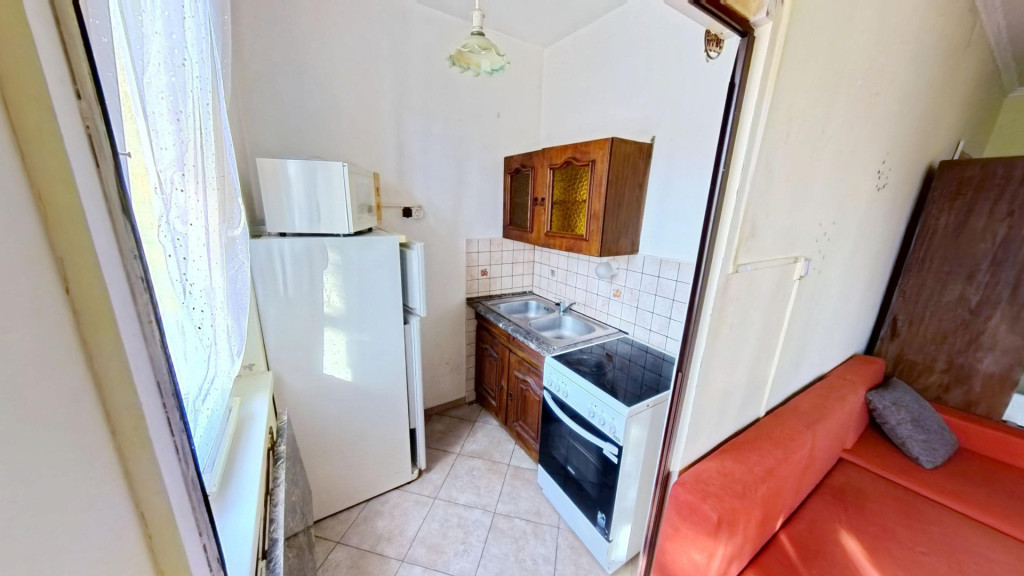 A HŐSZIGETELT épületben található lakás REZSIJE RENDKÍVÜL ALACSONY, közösköltség fűtéssel együtt mindössze 14 000,- Ft havonta. A radiátoros fűtés hőmennyiség mérővel van ellátva. A lakásba belépve egy előtérbe érkezünk. Szemben a KÁDAS FÜRDŐSZOBA van. Balra a tágas, világos szobába juthatunk. A szobából közvetlenül léphetünk ki az ERKÉLYRE, melyet járólappal burkoltak, valamint fix és nyitható ablakokkal zárttá tettek. A szoba jobb oldalán nyílik a nagy ablakának köszönhetően világos konyha.