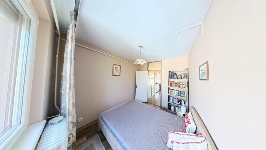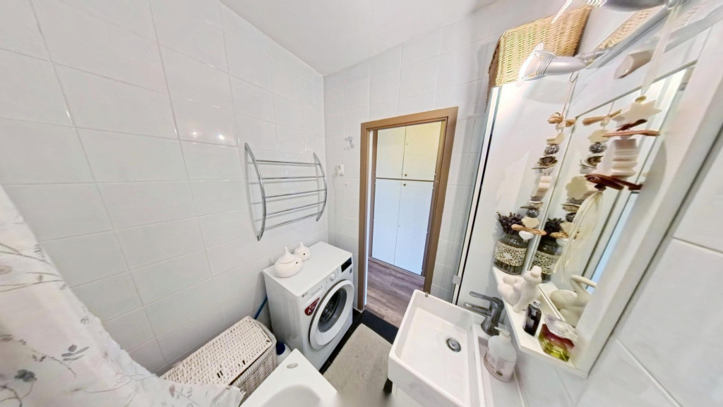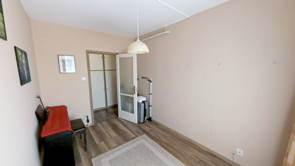 A nappaliból szintén egy kis közlekedőn keresztül érjük el a harmadik hálószobát. Ebben a közlekedőben is megtaláljuk a MÁR MEGSZOKOTT MINŐSÉGŰ, mennyezetig érő BEÉPÍTETT SZEKRÉNYT. Ebből a közlekedőből nyílik az IGÉNYESEN FELÚJÍTOTT, ülőkádas FÜRDŐSZOBA.