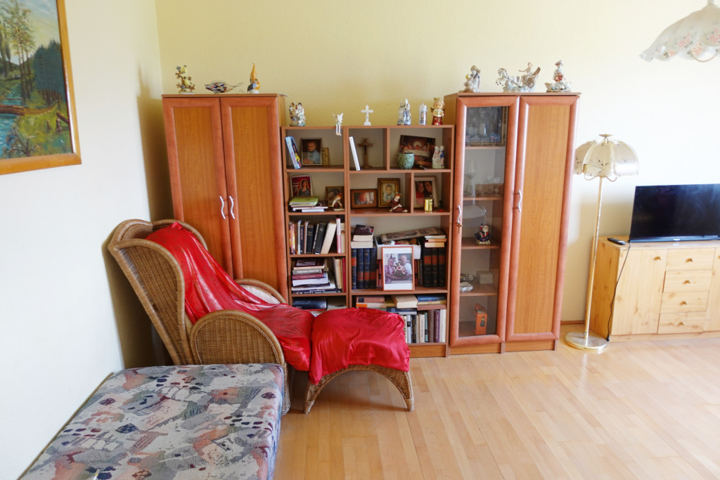 A közlekedő végén, a bejárattól jobbra nyílik a hálószoba. A HÁLÓSZOBÁBAN MENNYEZETIG ÉRŐ BEÉPÍTETT SZEKRÉNY segít a tárolásban. Mind a nappaliból, mind a szobából és a konyhából kinézve valóban MAGÁVAL RAGADÓ PANORÁMÁBAN GYÖNYÖRKÖDHETÜNK, amely a veszprémi várra és a Bakonyra néz.