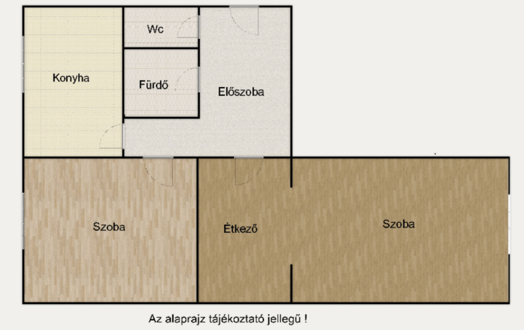 Elosztása révén 2 nagy méretű szoba és hall, amely jelenleg étkezőként funkcionál valamint a konyha és külön fürdő - wc kialakítással minden igényt kielégít az 53 nm-en.