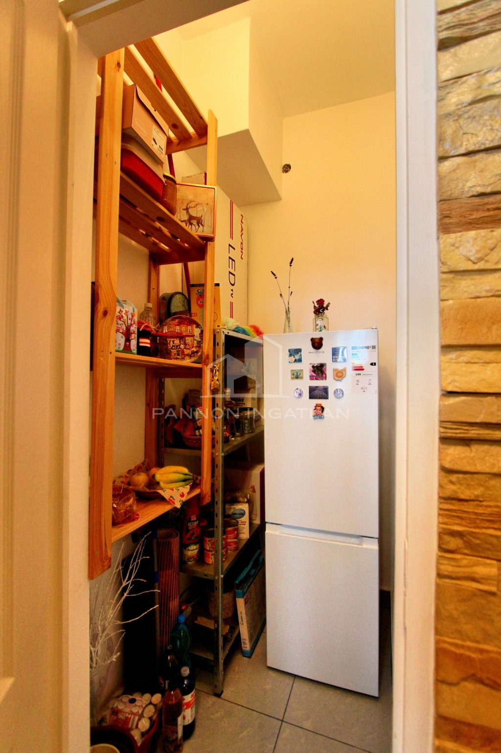 A konyhai tárolóhelyek kiegészítésére egy kamra helyiség is szolgál.