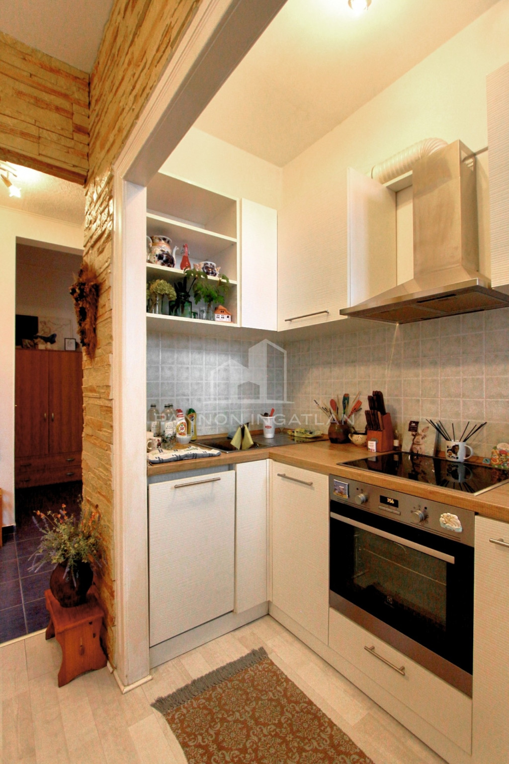A lépcsőház és az üveges folyosó visszaidézik a múltat, a lakásba belépve viszont a mai kornak megfelelő megoldásokkal találkozunk, pl. a beépített mosogatógéppel és szagelszívóval felszerelt konyhában, ahol minden karnyújtásnyira van.