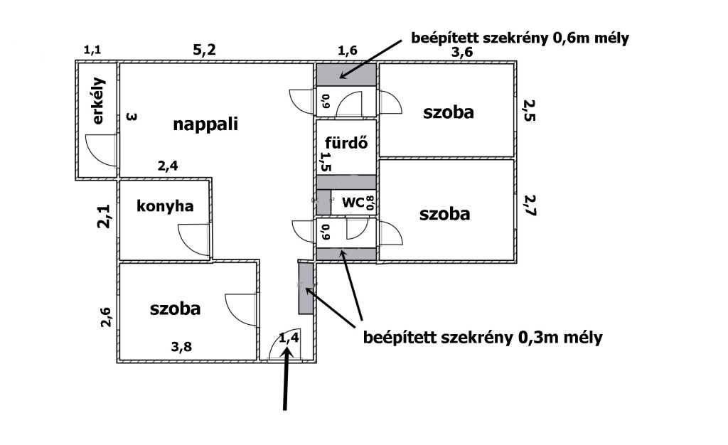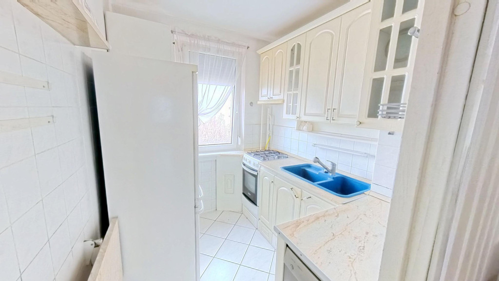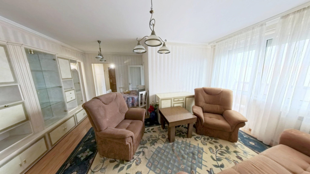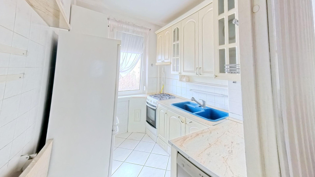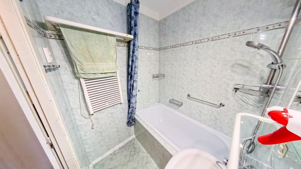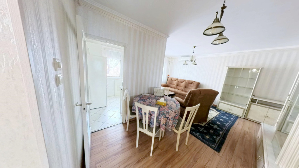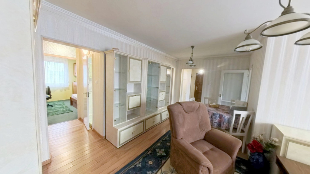 A közlekedőből nyílik a fürdőkádas fürdőszoba. Ebben a közlekedőben is mennyezetig érő beépített szekrény segíti a holmik tárolását. Az ablakokat, az erkélyajtót HŐSZIGETELT MŰANYAG NYÍLÁSSZÁRÓKRA cserélték, melyeket ALUMÍNIUM REDŐNNYEL, szúnyoghálóval is elláttak. A nappaliban, 2 hálószobákban laminált lap, 1 hálószobában szőnyegpadló, a konyhában, fürdőben, WC-ben, a közlekedőkben kerámia a padló burkolat.