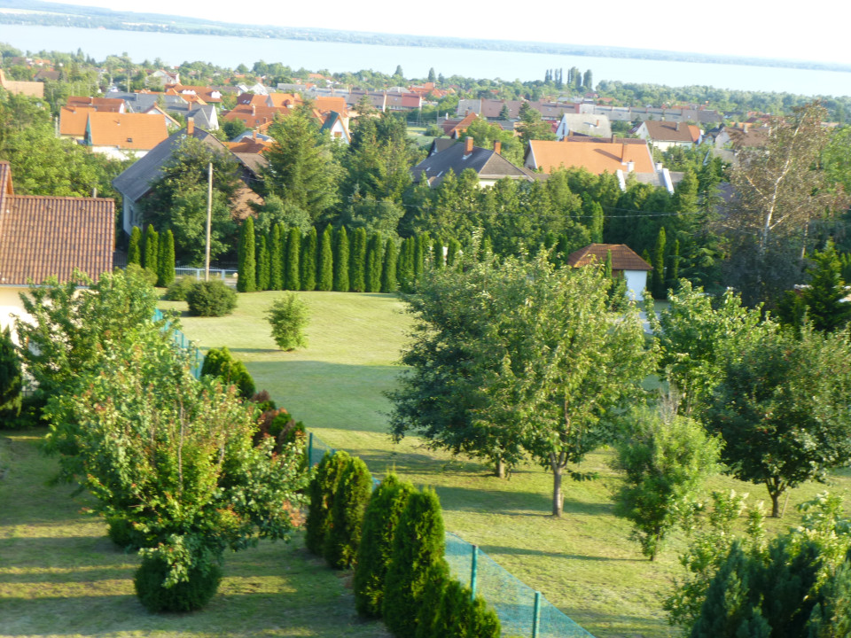 Családi ház örök balatoni panorámával. 2100 m2 telek gyümölcsfákkal bioszőlővel. Bal oldali részen található egy borospince, szerszámtároló, társalgó nagy terasszal, mely déli fekvésű balatoni panorámával. Külön bejárattal jobb oldalon 1 szoba, konyha-szauna (nincs beépítve), fürdőszoba zuhanyzóval-WC-vel, nagy déli fekvésű terasszal balatoni panorámával. Első emelet bal oldali részén erkély balatoni panorámával, gardrób, konyha-étkezővel (fatüzelésű kandalló) melyből kijárat a nagy teraszra, ahol nyári konyha lett kialakítva, hálószoba, fürdőszoba zuhanyzóval. Jobb oldali részen egy nagy nappali balatoni panorámával, fürdőszoba tusolóval WC-vel, hálószoba, gardrób, nagy hálószoba balatoni panorámával és erkéllyel. Az ingatlan hátsó részén egy fatároló, és egy faház lett megépítve. Két autóbeálló, mely fedett, Közművek bekötve, gázfűtés, riasztóberendezés, automatikus kapu. 6 autónak parkoló. Energiatanúsítvány: HET-00145680.