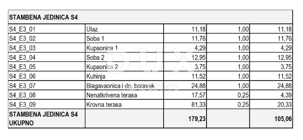 Petrčane vonzó részén, mindössze néhány percre a strandtól található egy modern lakópark, amely két modern tervezésű épületből áll. Az 1. épületben, a második emeleten található az S4-es apartman - tágas tetőterasszal és nyílt tengerre néző kilátással. A lakás előszobából, két kényelmes hálószobából, két fürdőszobából, modern kialakítású konyhából étkezővel és nappalival, egy fedetlen teraszból a nappali mellett, valamint egy nagy, privát tetőteraszból áll, víz- és villanycsatlakozással, amely a vevő kívánsága szerint alakítható ki - ideális hely napozásra, jakuzzi, társalgó vagy nyári konyha számára. A lakáshoz tartozik egy tárolóhelyiség és két garázshely az alagsorban (vásárlás szükséges - teljes terület 13,72 m² / nettó 6,88 m² GPM-enként + tárolóhelyiség kb. 5 m²). Minden emelet lifttel van összekötve, ami tovább növeli a lakás praktikusságát. A lakás kiváló minőségű felszereltsége a következőket tartalmazza: - Padlófűtés az egész lakásban - Hőszivattyúk fan-coilokkal - Alumínium nyílászárók tolóredőnyökkel a napvédelem érdekében - Hőszigetelt homlokzat (15 cm-es polisztirol) - Padlóburkolatok az ügyfél választása szerint - parketta és/vagy kerámia - Beépített tartályok és kiváló minőségű szaniterek - Betörésgátló és tűzgátló bejárati ajtó - Mágneses zárral és rejtett tömítésekkel ellátott belső ajtók - Videó kaputelefon - Lift, amely összeköti az összes emeletet - a garázstól a lakásig és a tetőteraszig Az S4 apartman ideális mindazok számára, akik valami különlegeset keresnek - a modern kényelem, a magánélet és a tengerre nyíló látványos kilátás kombinációját. A tetőterasz további értéket képvisel az ingatlanban, így tökéletes választás nyaraláshoz, mindennapi élethez vagy luxus turisztikai bérléshez. A petrčanei elhelyezkedés garantálja a nyugalmat, ugyanakkor kiváló összeköttetést biztosít Zadarral és Riviérájával.