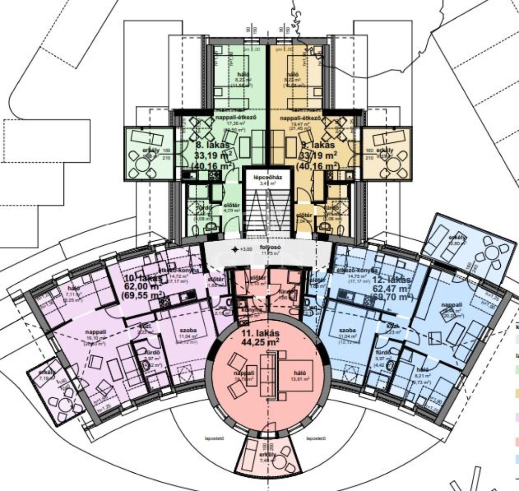 A ház alagsorában különféle méretű tárolók (3,8-12 m2) kerültek kialakításra, melyek szintén megvásárolhatók.