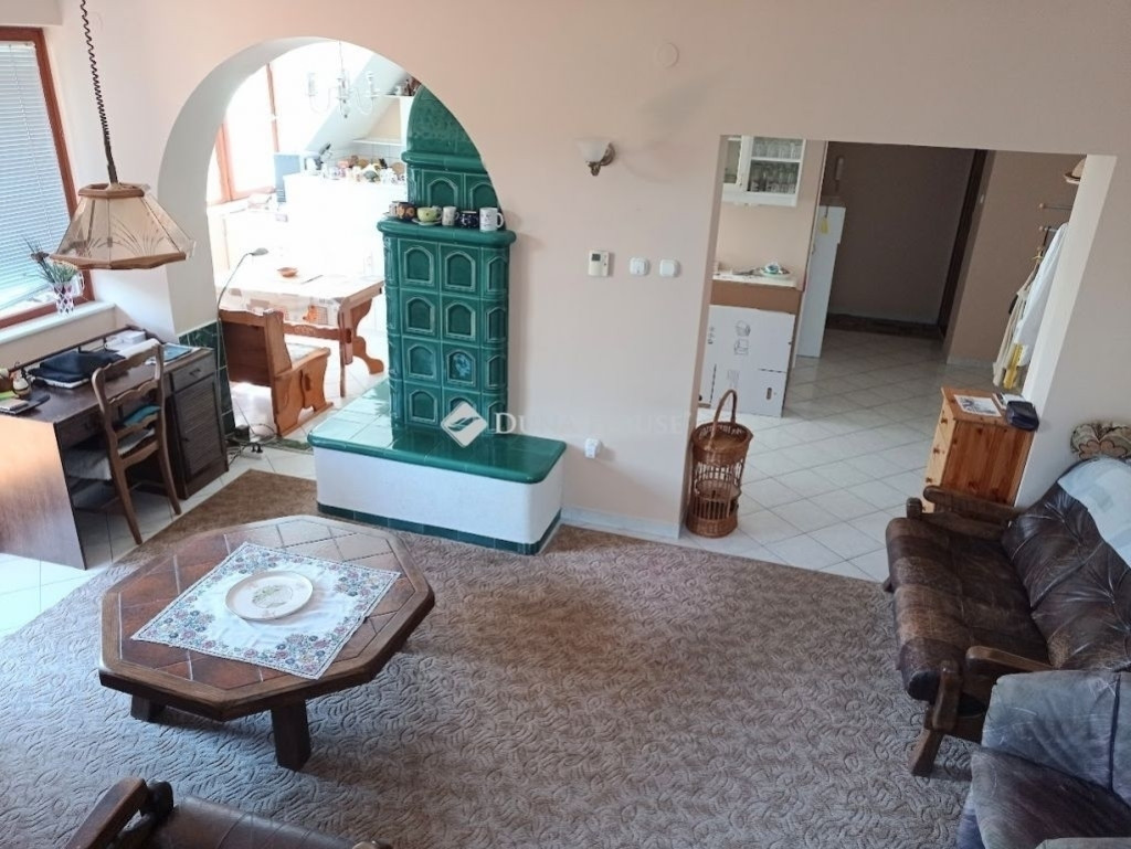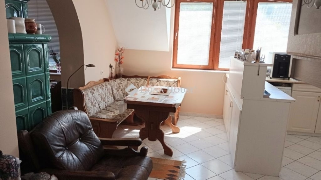 Az alsó nappaliban egy nagyon szép , gondos kezek által készített cserépkályhát is találunk, ami tényleg hangulatossá teszi a belső teret.