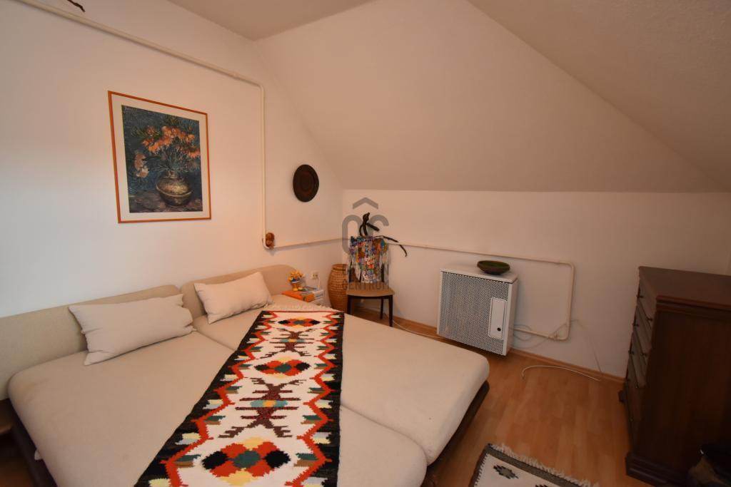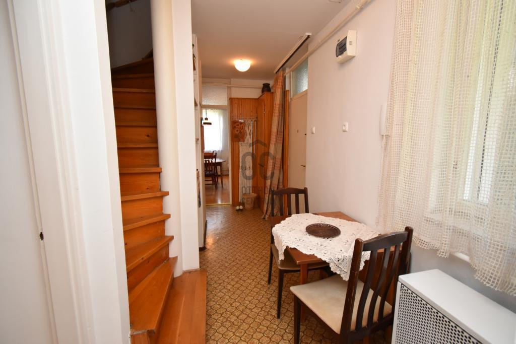 - az emeletre egy hangulatos fával burkolt lépcsőn jutunk fel, itt egy kis előtér, két szoba, zuhanyzó, WC kapott helyet