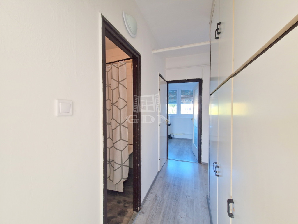 A 62 m2 - es ingatlan helyet ad egy nagy beépített szekrénnyel rendelkező folyosónak, egy előtérnek, egy konyha - étkező együttesnek, 2 külön nyíló hálószobának, egy erkélykapcsolatos nappalinak, egy fürdőkáddal felszerelt fürdőnek, egy külön helyiségben található toalettnek, valamint egy 2 m2 - es erkélynek.