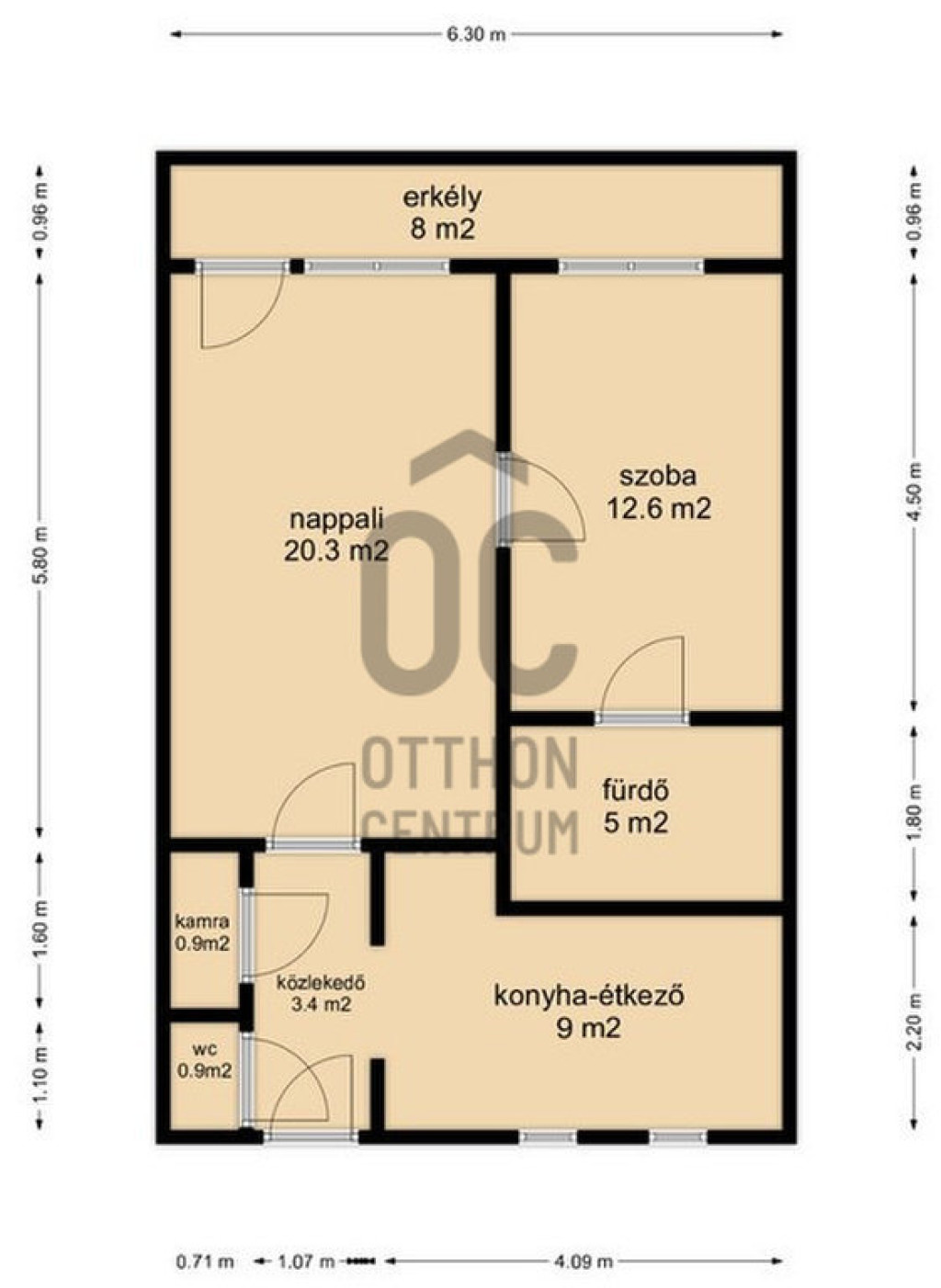- 54 m2-es nettó alapterületű, 8 m2-es nagy erkéllyel rendelkezik.