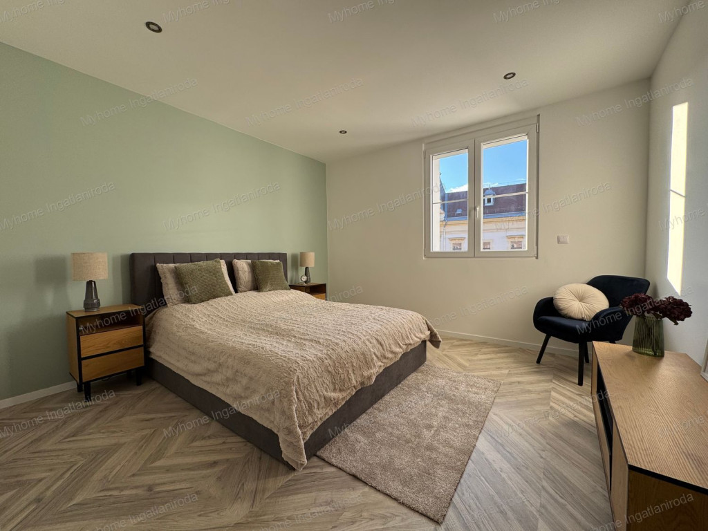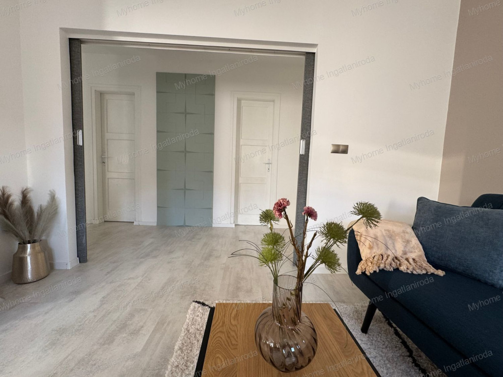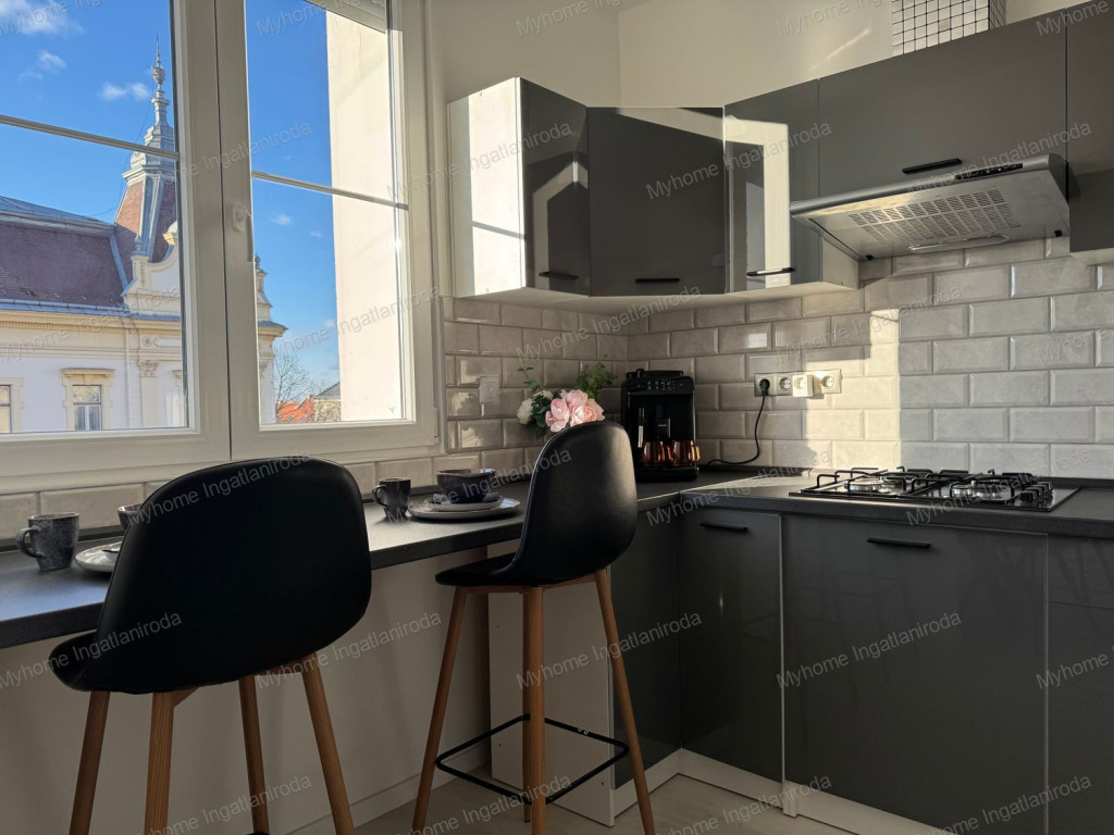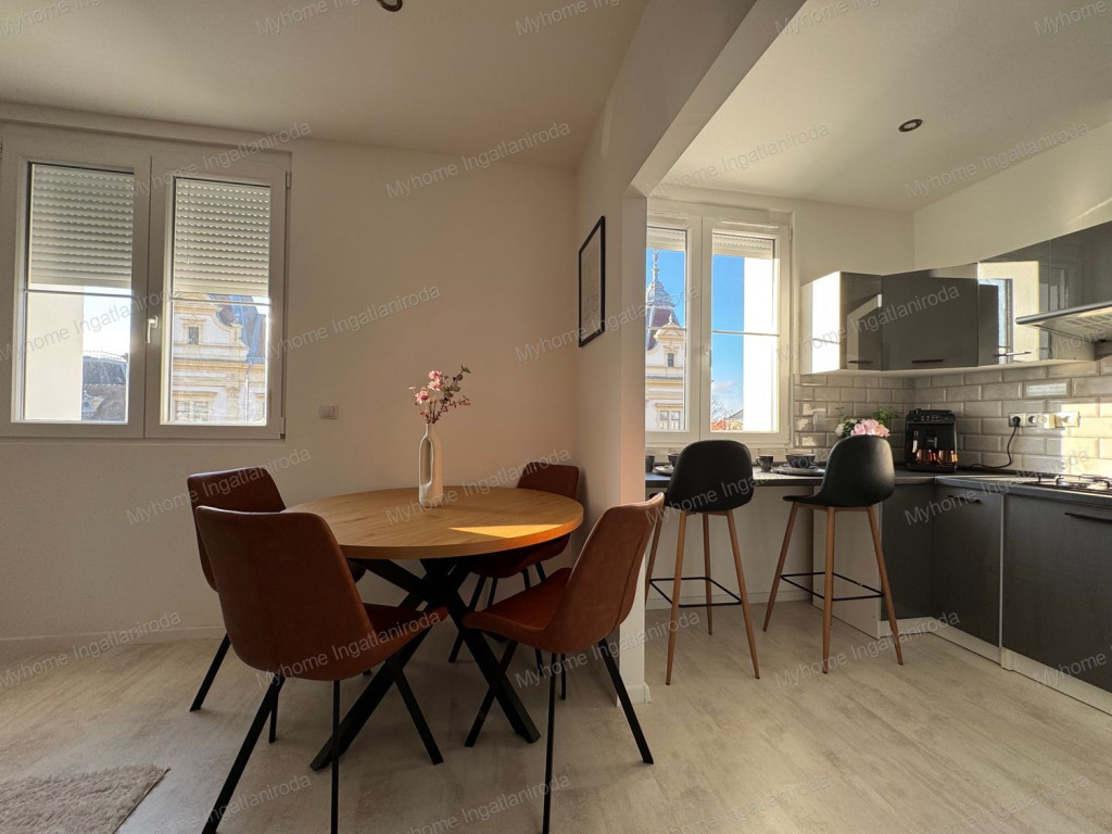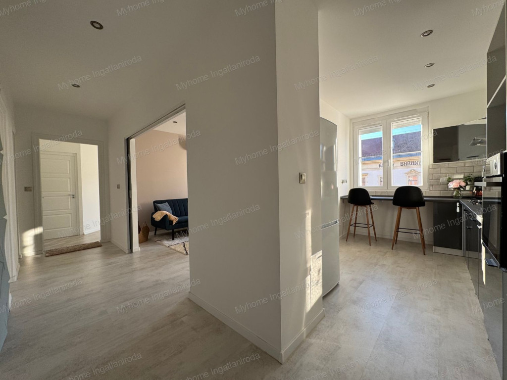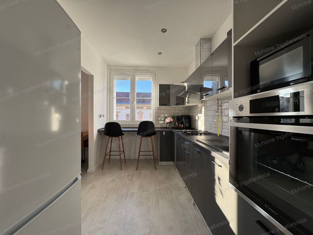 Eladó Zalaegerszeg szívében, a Széchenyi téren egy teljesen felújított, 55 m²-es, harmadik emeleti, modern okos otthon.