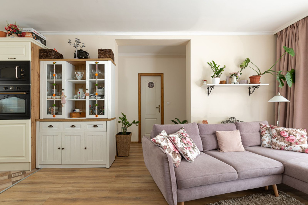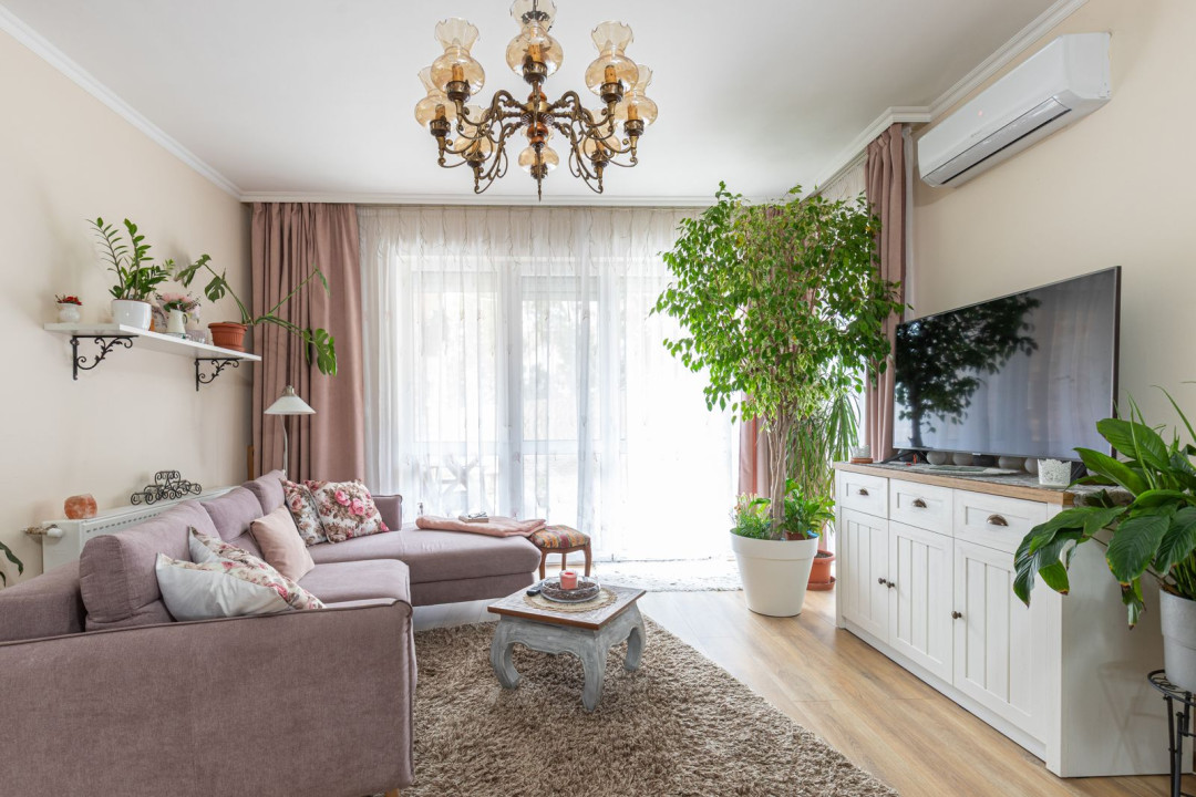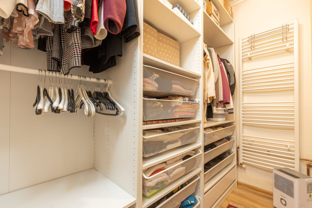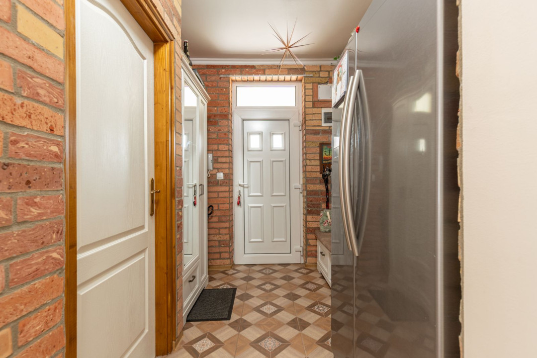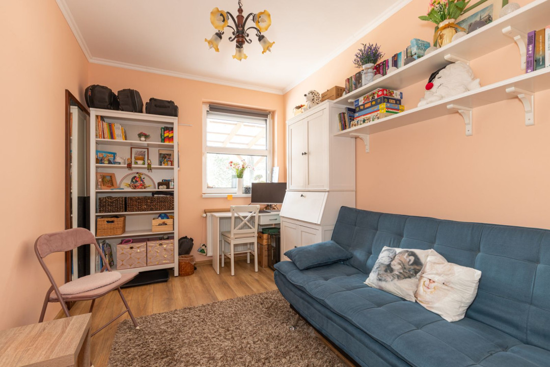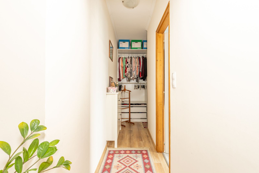 Az ingatlan nappali + 2 hálószobás elosztású, a hálók a lakás két végében kaptak helyet, ami ideális elrendezést biztosít akár családnak, akár otthoni munkavégzéshez. A nagyobb hálóhoz külön leválasztott gardróbrész tartozik. A fürdőszoba modern, zuhanyzós kialakítású, mellette egy tágas, kézmosóval ellátott külön WC és egyben háztartási helyiség került kialakításra, ahol a mosógép és a saját cirkó is helyet kapott. A fűtésről- és a melegvíz ellátásról az utóbbi gondoskodik, a komfortérzetet klímaberendezés növeli. A ház szigetelt, a fenntartási költségek kedvezőek.