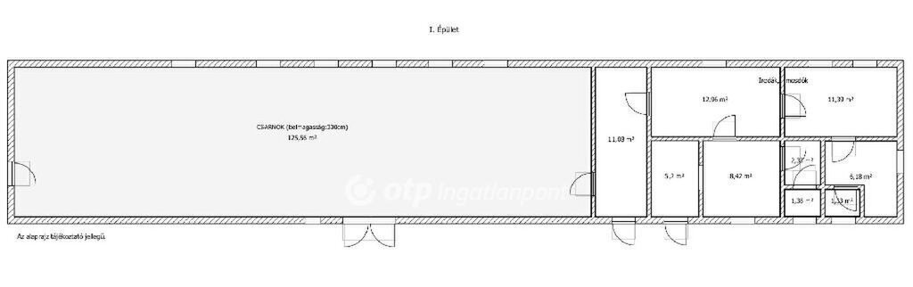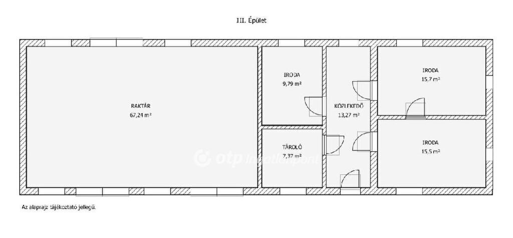 A . épület tégla falazatú. Alkalmas lehet raktár (67m2) és iroda (61m2) funkciónak, erősen felújítandó állapotban van.