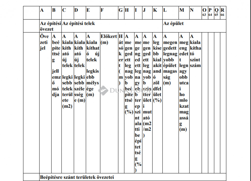 Ebből adódóan és ennek ismeretében az ingatlanokra vonatkozó beépítési szabályok: